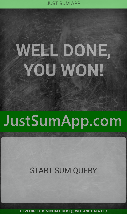 Just Sum App was developed to support the QuizKit.com community by Michael Bert. The simple application is extremely effective in developing A basic mathematical addition skill. I is esentials for kids to pick this skill up early in there life to successful in the educational carrier and beyond. Michael Bert has been developing educational tools from conception to delivery sicne 1996.